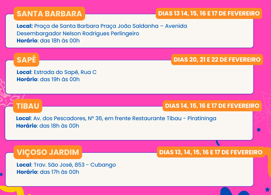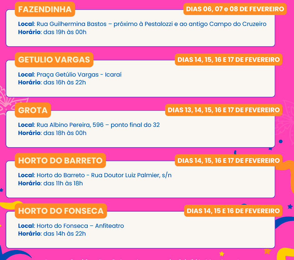 e 20 Carnavais de Bairros espalhados pela cidade
