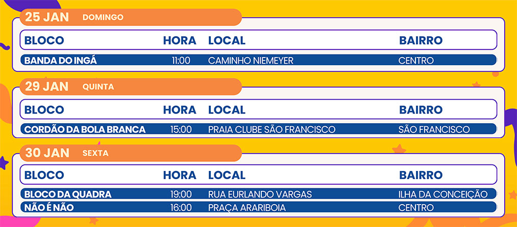 Programação dos Desfiles no Caminho Niemeyer